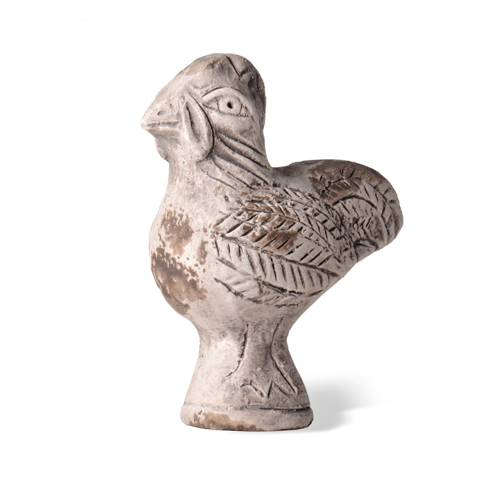 Questo Sonaglio a forma gallo ¨¨ realizzato in terracotta. Il gallo, ¨¨ l'animale simbolo del buono ed ¨¨ legato al culto di Mercurio (Hermes), dal quale si pensava ricevesse influssi divini all'alba.