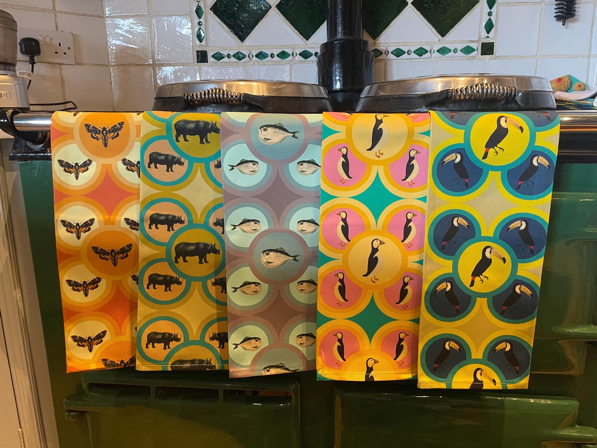 Choose from 5 vibrant tea towel designs featuring animals from antique illustrations and engravings. Made from 100% organic cotton and crafted in the UK, each tea towel includes a handy hanging loop and is machine washable at 40¡ãC. Beautiful and practical, they're perfect for adding charm to your kitchen or gifting to a nature lover. Sets of 2 or 3 available-please specify your chosen designs in the order notes.